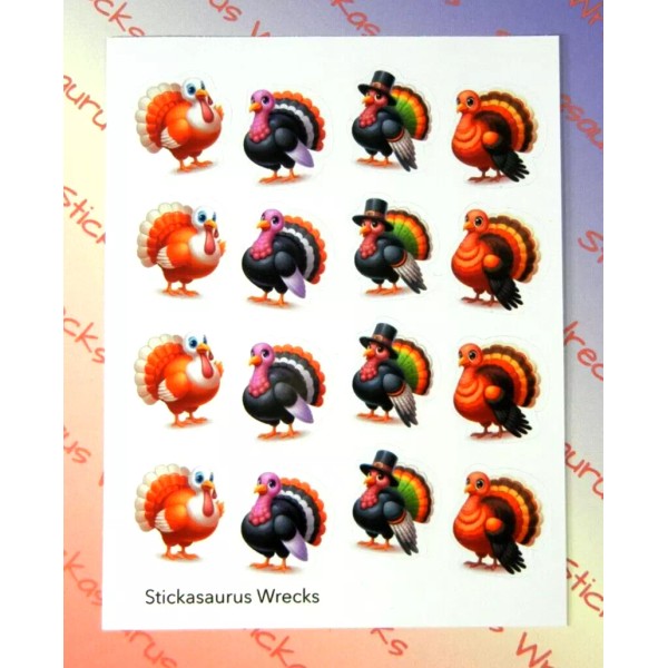 Stickasaurus Wrecks Thanksgiving Turkeys Sticker Sheet