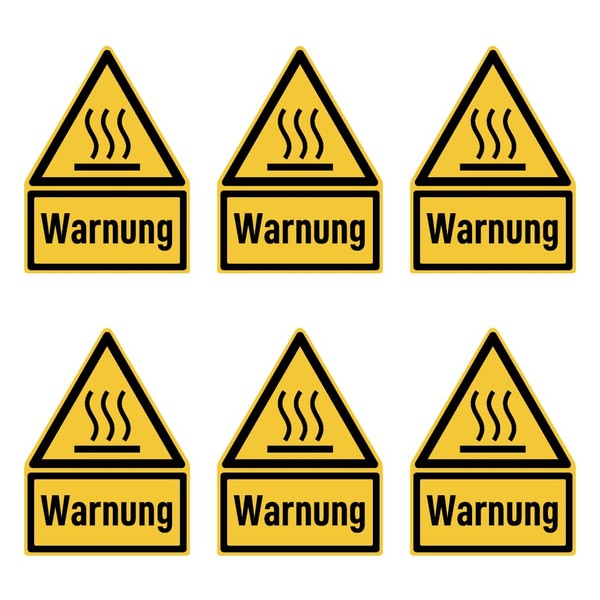 Sticker 75 x 50 mm, Pack of 6 – Signal Word Warning of Hot Surface – Warning Sign with Text (German) (Yellow/Black) – Dreick – W017 – DIN EN ISO 7010 / ASR A1.3