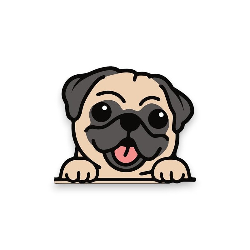 Sticker Gold - Peeping Pug 17cm Car Sticker - Cute, Puppy, Dog, Fun, Peeking, Funny Decal SG146