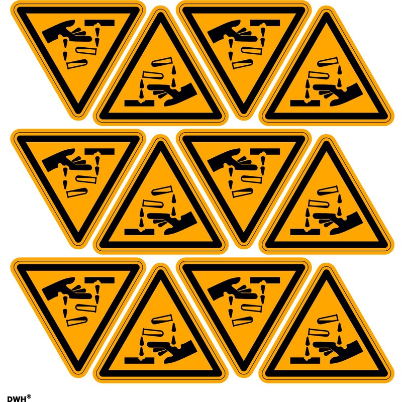 Sticker Warning Sign Warning of Corrosive Substances Warning Sticker ASR/ISO W023 SL50 mm Pack of 12