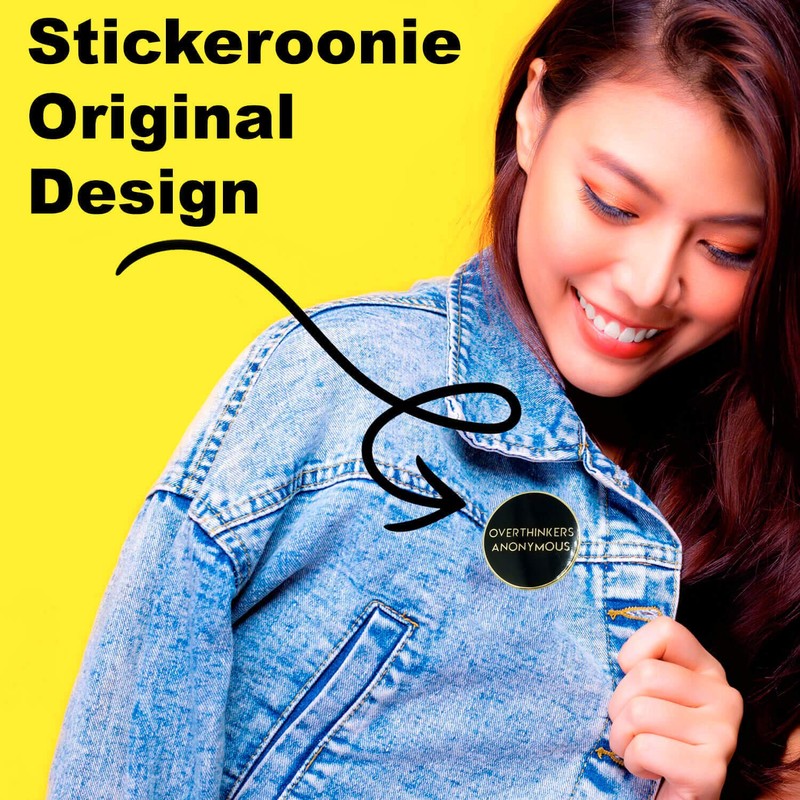 - Stickeroonie Original Design - The Overthinkers Anonymous Pin is a unique design you won’t find elsewhere; The Stickeroonie logo stamped on the back of each pin ensures quality; Go bananas and pair this design with other Stickeroonie pins and stickers