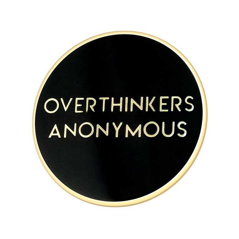 Stickeroonie Overthinkers Anonymous Funny Enamel Lapel Pin. 1.1 Inch Size. Black Gold Enamel Pins, hat pins, jean pins, backpack pins