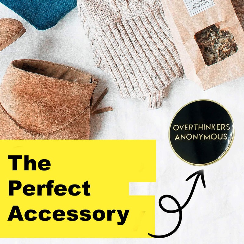 - Pin It Anywhere - Its secure metal butterfly backing provides secure closure on shirts, bags, backpacks, hats, and jackets; Let your Overthinker flow wherever you go
