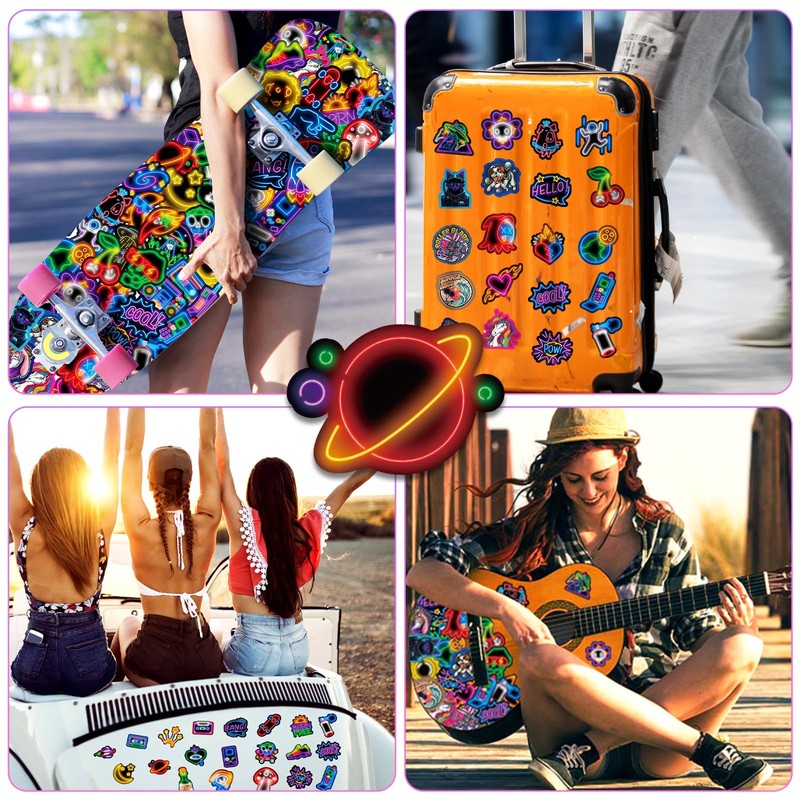 Stickers, Pack of 50 Cool Neon Sticker Set, Graffiti Stickers, Children, Waterproof Vinyl Stickers, Bicycle, Car, Laptop, Skateboard, Scrapbook, Drinking Bottle, Suitcase, Children's Birthday Party