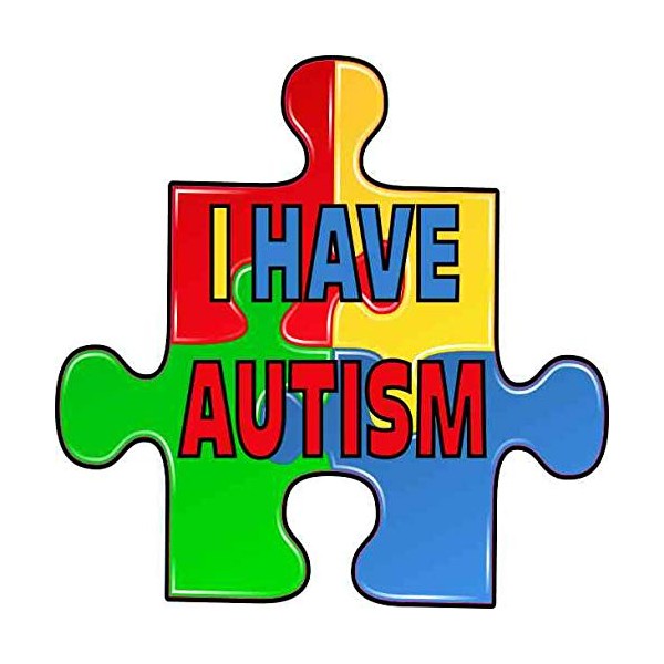 This sticker is 4 inches wide by 4 inches tall when applied. It features the words, I HAVE AUTISM, in yellow, blue, and red letters with black outlining. The sticker's background depicts colorful, interlocking puzzle pieces that form one large puzzle piece. This sticker is die cut, so no white border will remain after application. This carefully crafted product is durable and easily visible, making it a creative way to raise awareness and advocate!