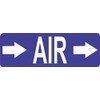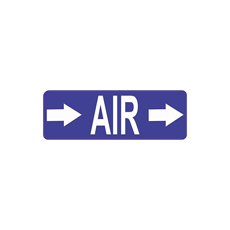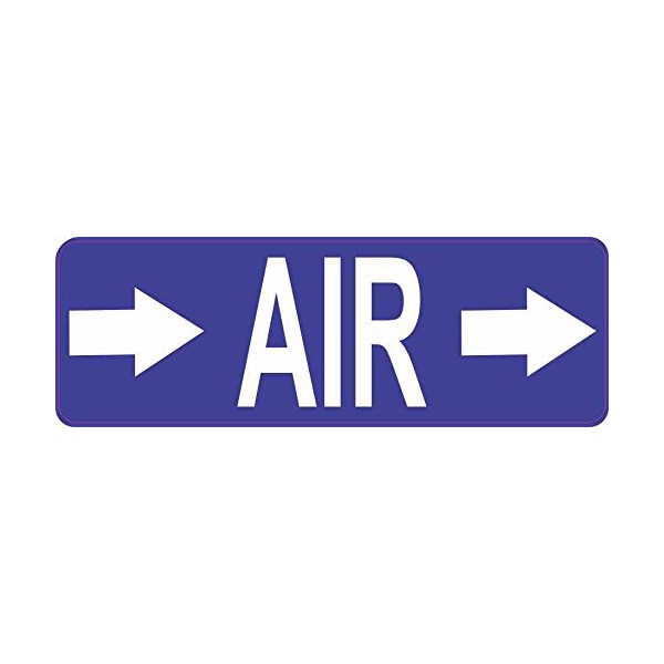 This magnet is 6 inches wide by 2 inches tall. The word, AIR, is printed in white letters on a blue background; a white, right-pointing arrow is printed on both sides of the text. This quality-made product is ideal for use as a pipe marker in plants, factories, and other industrial settings. However, it only attracts ferromagnetic metals.