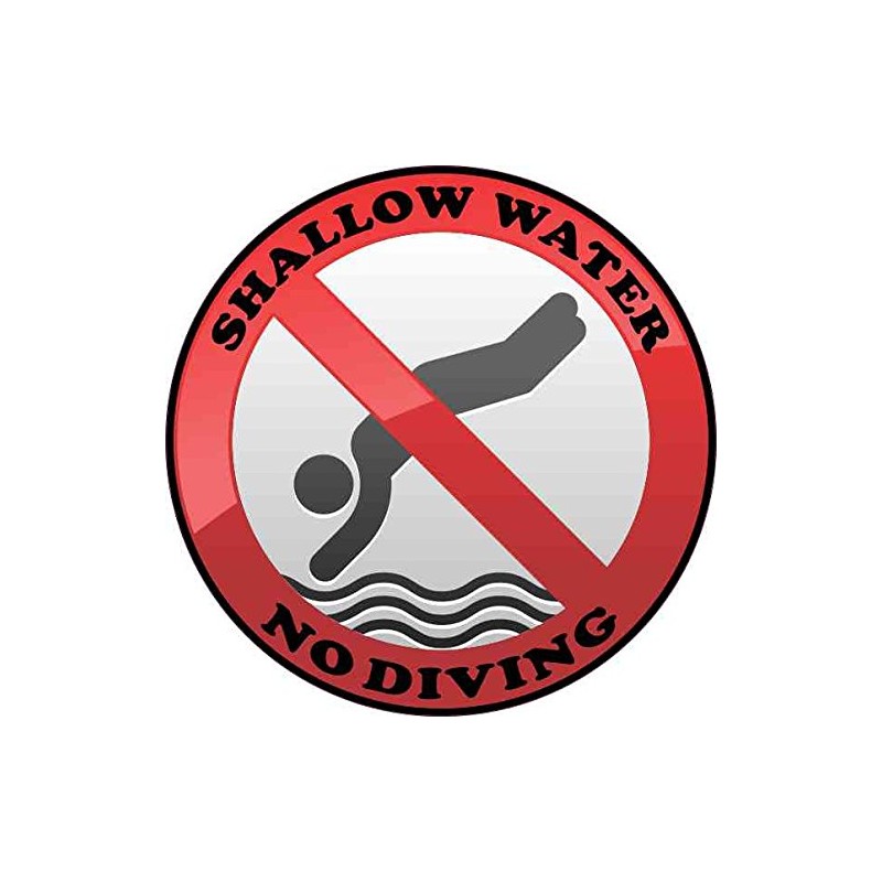 StickerTalk Shallow Water No Diving Vinyl Sticker, 4 inches by 4 inches