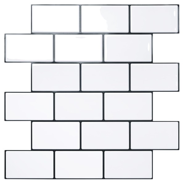 STICKGOO 10-Sheet Peel and Stick Backsplash, White Subway Tile Stick on Backsplash for Kitchen (Thicker Design)
