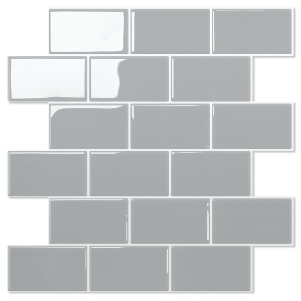 STICKGOO 10-Sheet Subway Tiles Self Adhesive Kitchen Splashbacks, Peel and Stick Wall Tile Stickers, Stick on Tiles Splashback (Light Grey, Thicker Design)