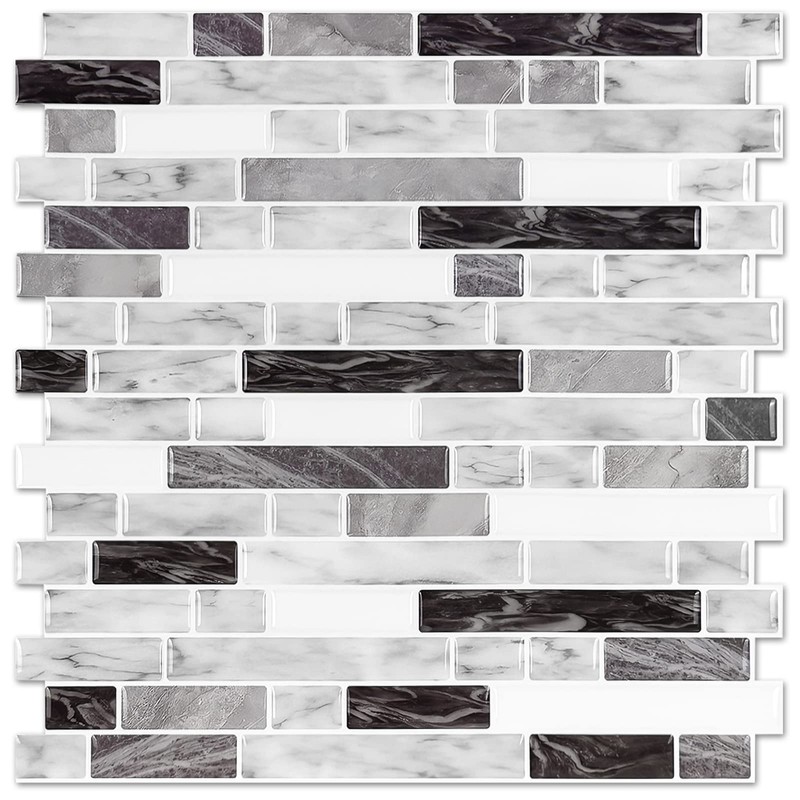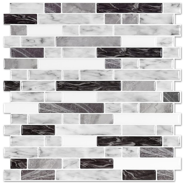 STICKGOO Thicker Design Peel and Stick Tile Backsplash, 12”×12”Stick on Backsplash for Kitchen, Self Adhesive Tile for Kitchen Backsplash and Bathroom(10 Sheets, Carrara Grey)