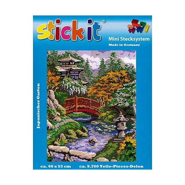 Mini plug-in system Japanese garden approx. 9,700 pieces, size 66 x 53 cm, contents: template, colour stripes, base plates, connectors, hanger and lever. Stick it - promotes fine motor skills and concentration. Stick it is a standalone and uniform plug-in game and should not be confused with other plug-in games available on the market