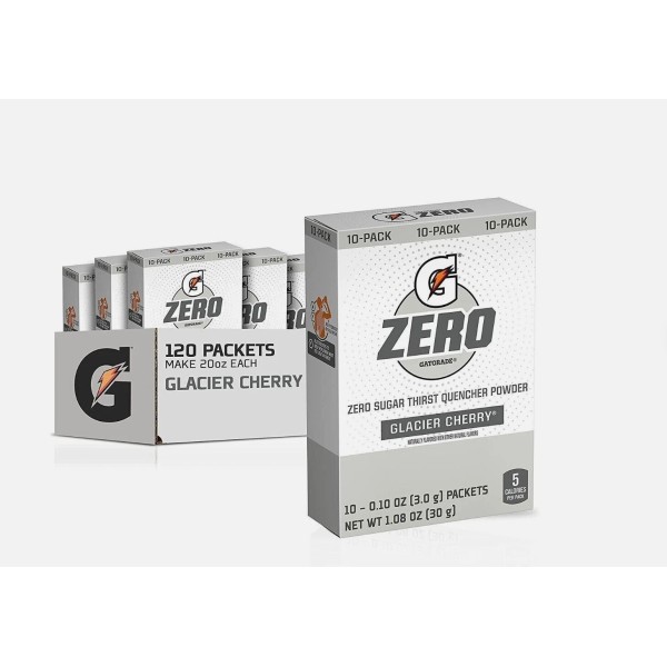 Quench your thirst for energy with GATORADE G ZERO Glacier Cherry Powder Sticks, a sugar-free blend that delivers a burst of flavor without the added calories. Each box contains 10 single-serve packets, perfect for on-the-go consumption or adding to your favorite beverage to enhance your workout regime.Crafted in the United States, these low-calorie sticks are designed to provide a refreshing twist to your fitness routine. With a serving size of 0.1 ounce and only 5 calories per 100 ml, GATORADE G ZERO is an excellent choice for those watching their intake while still craving the excitement of a classic energy drink.