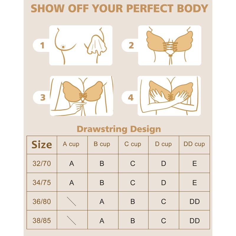 - Washable: Adhesive bras are self-adhesive and remain sticky after being washed and air-dried. It can be used multiple times. Note that the D and DD are smaller.