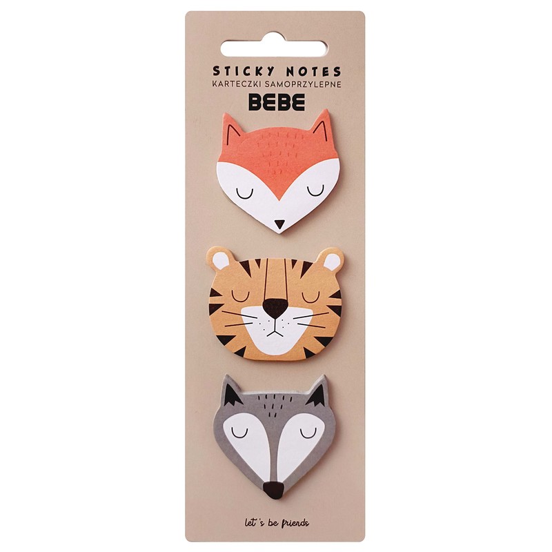 Sticky Notes with Animals - Sticky Tab Bookmarks - 75 Sheets - Tiger + Fox + Wolf