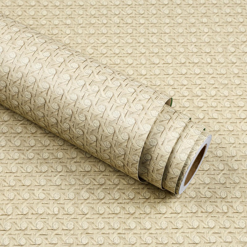 - Natural Cane Webbing Wallpaper Peel and Stick: Self adhesive honey rattan caning wallpaper is very easy to install. No messy glue or professional help is needed. Just peel off the backing and stick it to the wall. Temporary wallpaper is perfect for renters who want to remodel their apartments