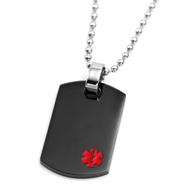 StickyJ USA Black Stainless Medical Dog Tag Necklace