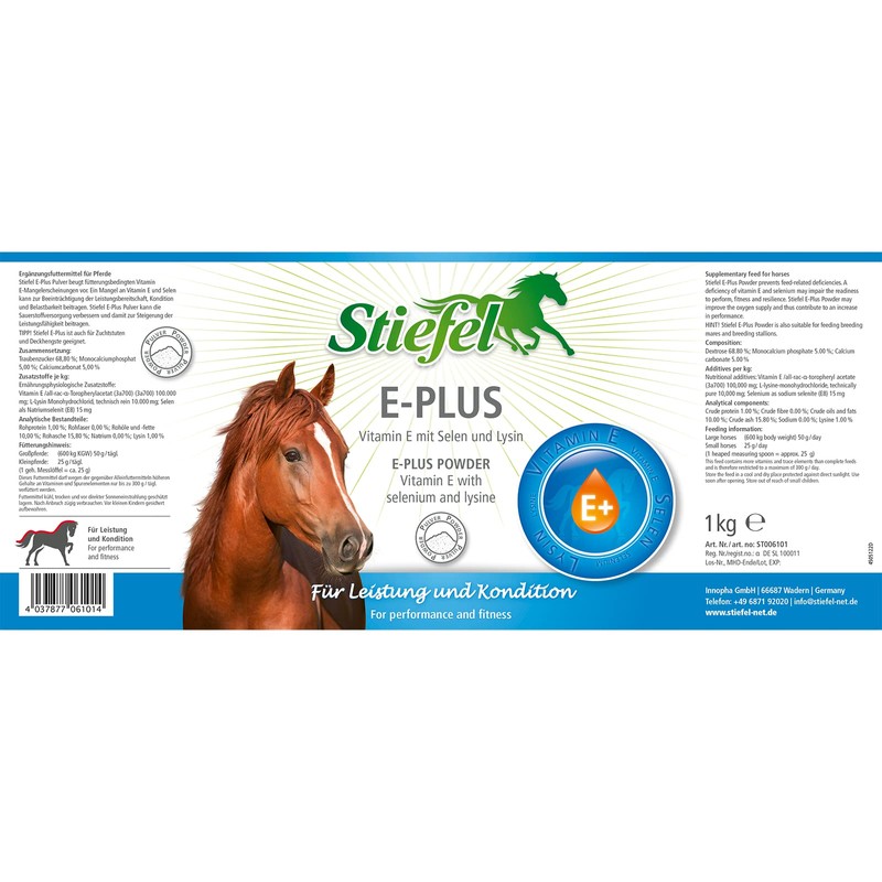 Stiefel E-Plus für Pferde, für mehr Leistungsbereitschaft, Kondition & Belastbarkeit, Vitamine E mit Selen und Lysin, Pulver, 1kg
