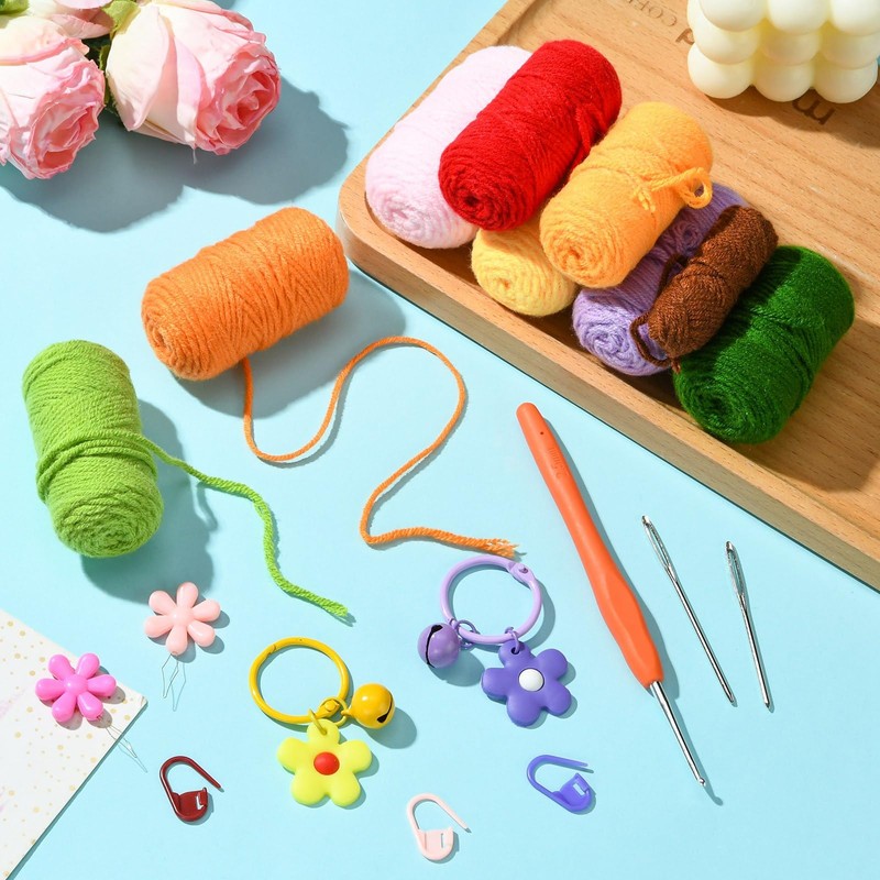 Complete Crochet Kit: Start your crochet journey with ease with our complete beginner kit, featuring 9 colors of yarn, stitch markers, needles, hooks, and instructions for all your crafting needs