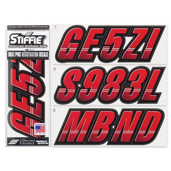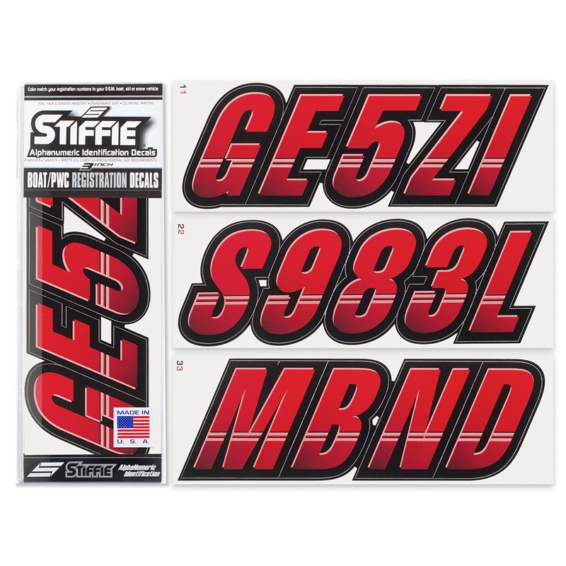 STIFFIE Techtron Red/Black 3" Alpha-Numeric Registration Identification Numbers Stickers Decals for Boats & Personal Watercraft