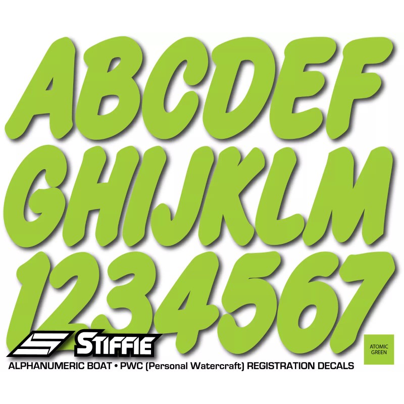 STIFFIE Whip-One WO28 ATOMIC GREEN Identification Boat Decal Registration Number