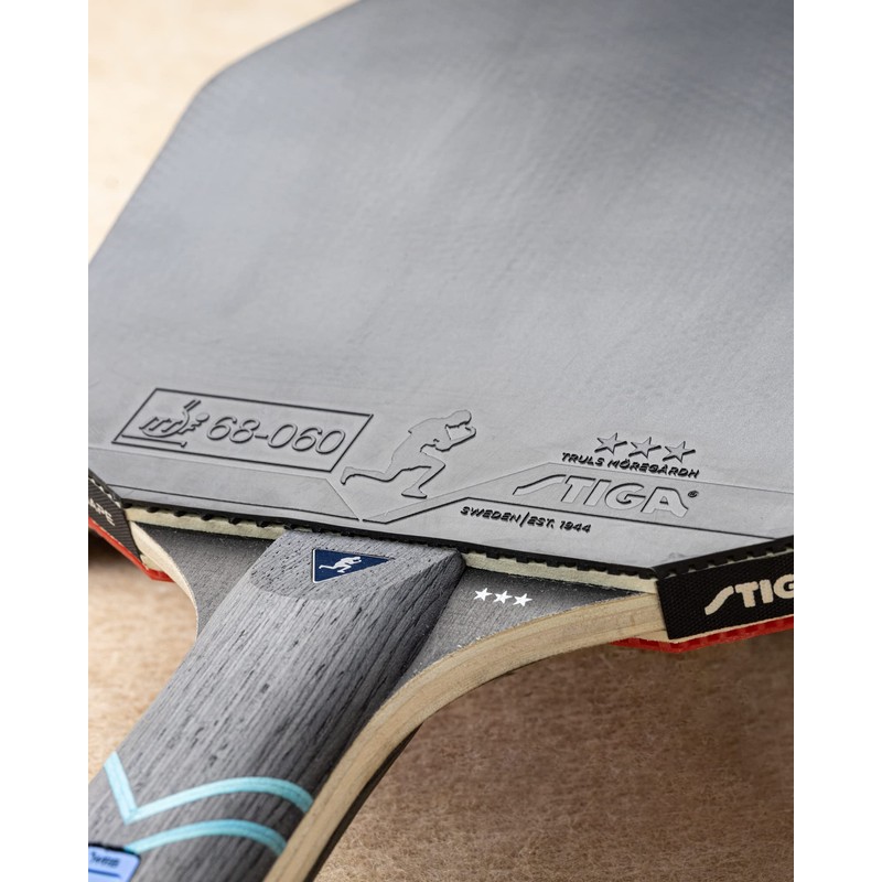 • STIGA s 3-star table tennis bat with its unique hexagonal cybershape shape for an enlarged striking surface