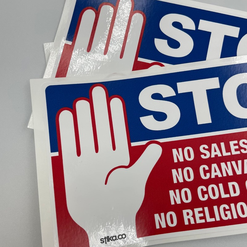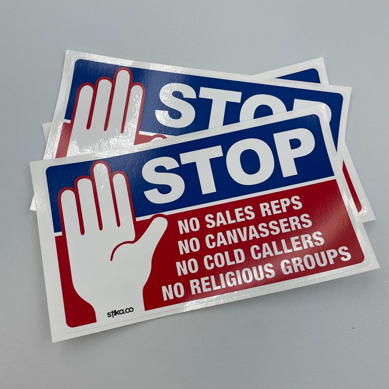 - Stop Cold Calling Door Vinyl Sticker Dimensions: 140 x 80mm