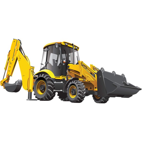 - Yellow Backhoe Loader Construction Truck Decal Measures Approximately 13-inches W x 11-inches H
