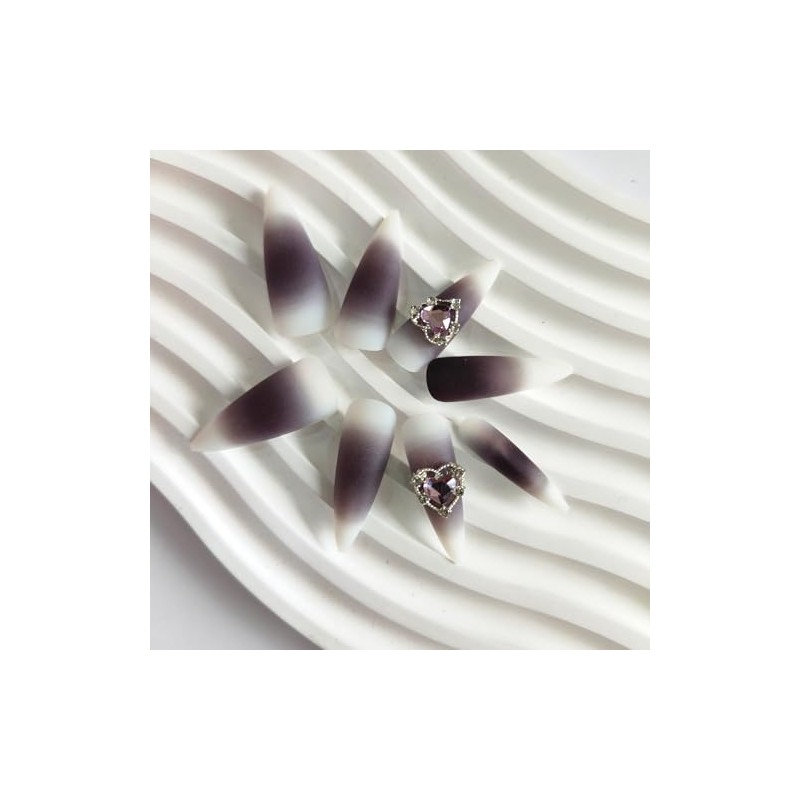 Stiletto Press on Nails Halloween Long Fake Nails with Heart Rhinestone Design Gradient Black False Nails Matte Full Cover Stick on Nails for Women Coquette Gothic Nails 24 Pcs