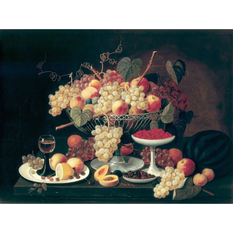 Still Life with Fruit by Severin Roesen Accent Tile Mural Kitchen Bathroom Wall Backsplash Behind Stove Range Sink Splashback One Tile 10"x8" Ceramic, Glossy