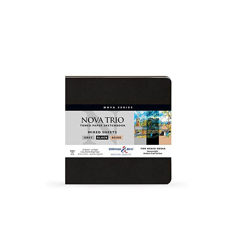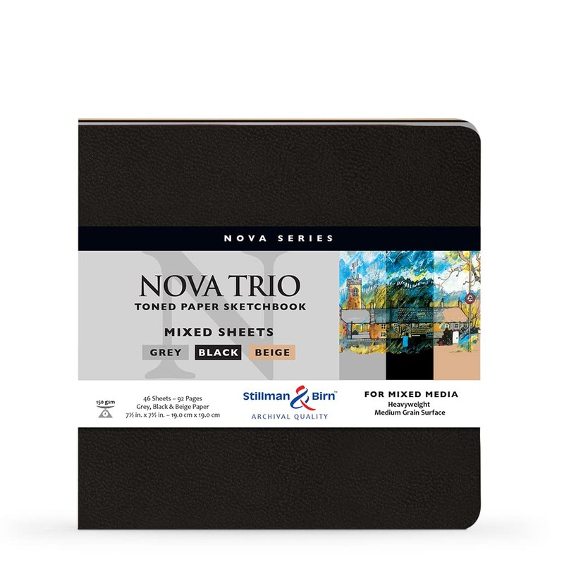 NOVA SERIES - SOFTCOVER SKETCHBOOKS Stillman & Birn Nova Series Toned Paper Softcover Sketchbooks, 150 gsm (Heavyweight), medium grain surface. Three shades: beige, grey and black. Suitable for dry media, light wash and ink. Example of recommended usage: ink underdrawing followed by layers of gouache. Acid-free, chloride-free, lignin-free.