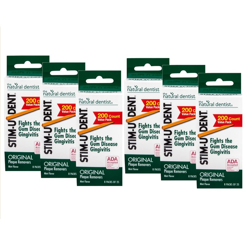 STIM-U-DENT Plaque Removers, Value Pack, Mint, 8 pk 25 ea (Pack of 6)