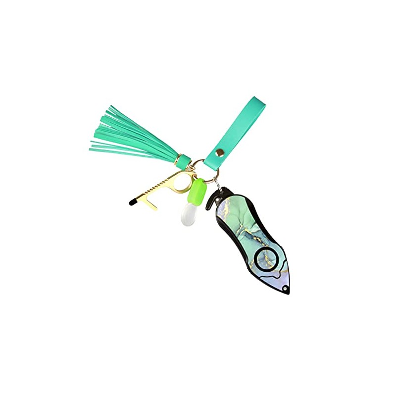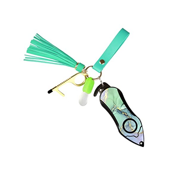 Stinger Personal Alarm Keychain Set: Safety Panic Alarm Siren, Seatbelt Cutter, Car Window Breaker, Wristlet Keychain, No Touch Door Opener Tool, Stylus Pen, Pocket Flashlight (Green Marble)