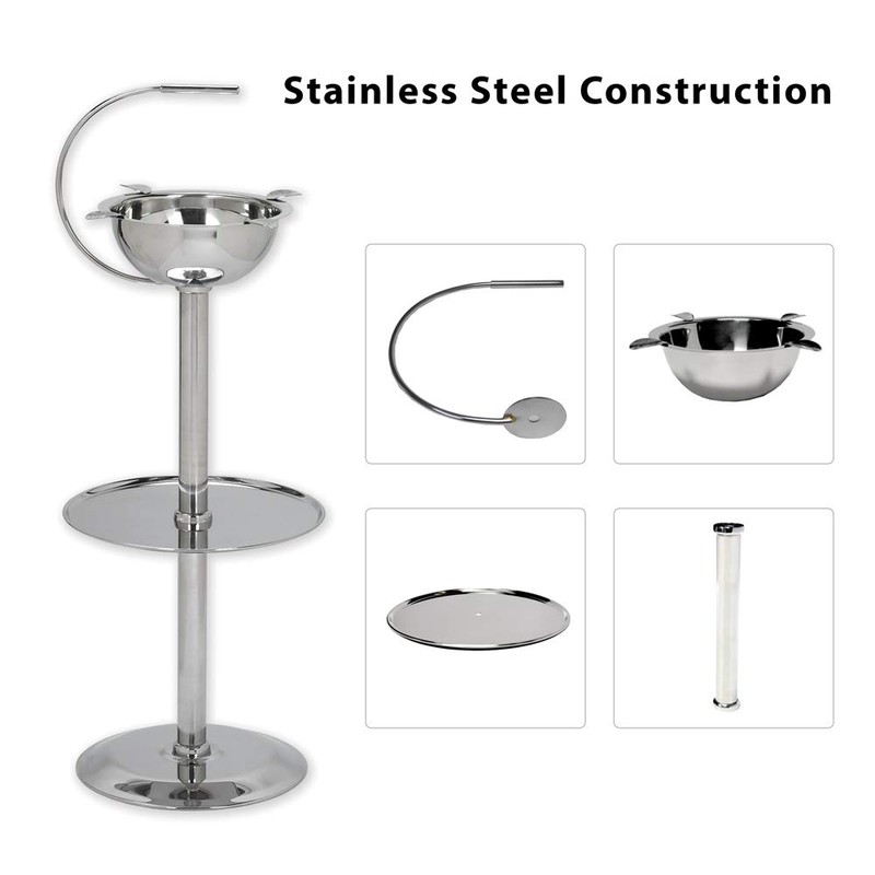 Stinky Cigar Floor Standing Stainless Steel Ashtray, Deep Bowl Design, Accessory Tray, 4 Stirrups