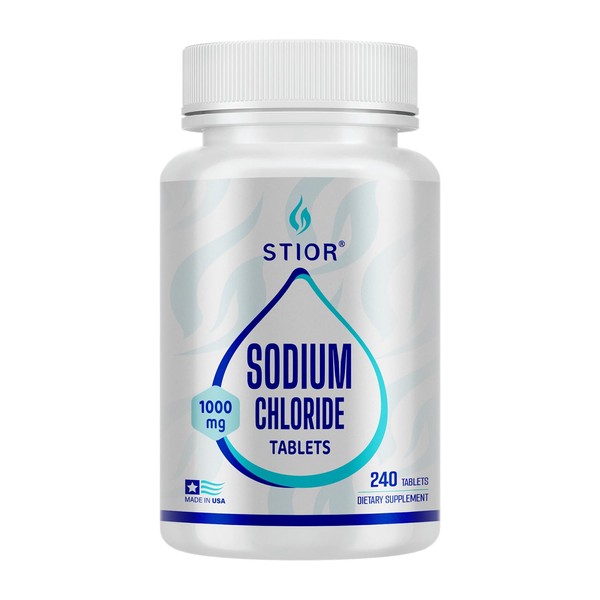 STIOR Sodium Chloride Tablets 1000mg, 240 Tablets, Sodium Chloride1 gm, Salt Pills for Pots, Non-GMO, Electrolytes Salt, Electrolytes Replenisher Hydration Drink, Made in USA
