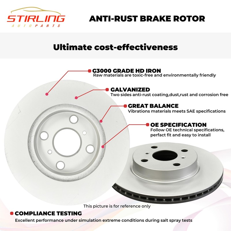 • Anti-Rust Rotors - Safer & smooth driving experience : [#1]G3000 grade HD Iron ,and raw materials are toxic-free and environmentally friendly. [#2]Rust resistance & corrosion prevention Design, 400 hours of salt water exposure without erosion. [#3]Vibrations reduction materials meet SAE specifications ,Great balance.