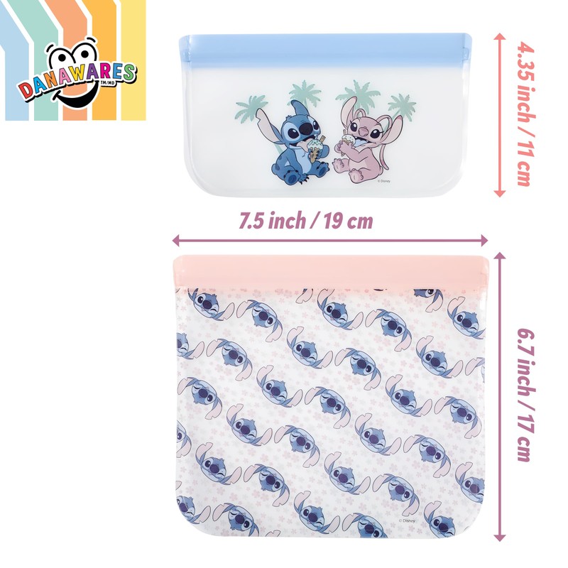 STITCH PEVA REUSABLE SNACK BAG 2 PK