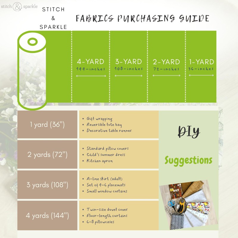 • Purchase in full yard increments Orders for multiples of one yard are sold in a single continuous piece of fabric