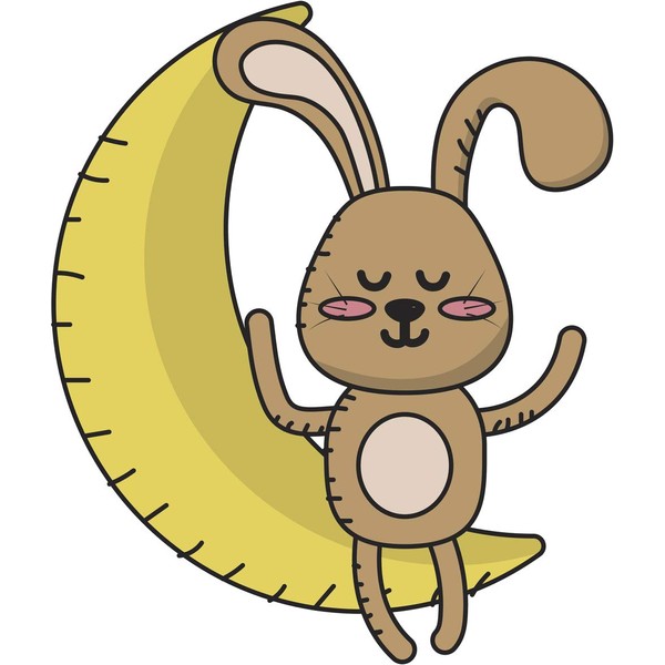 Stitched Bunny Rabbit and Moon Good Night Sleepy Childrens Cartoon Vinyl Sticker (2" Tall)