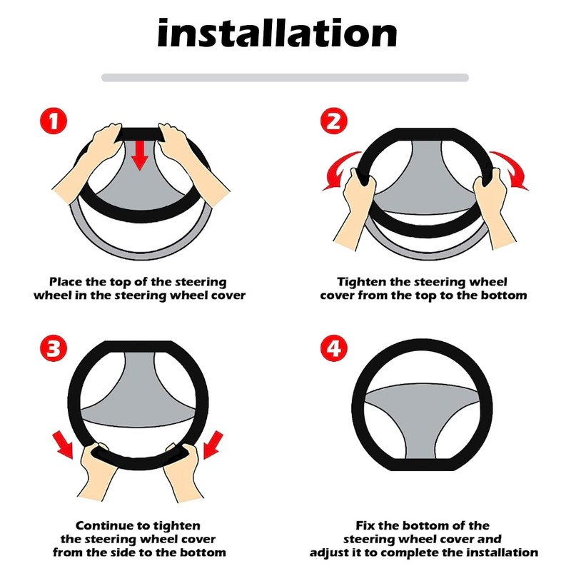 • Ready to Install-Warm up the steering cover for munites, and slip it on your steering wheel. Installation is fairly easy, any adult can easily install this steering wheel cover.