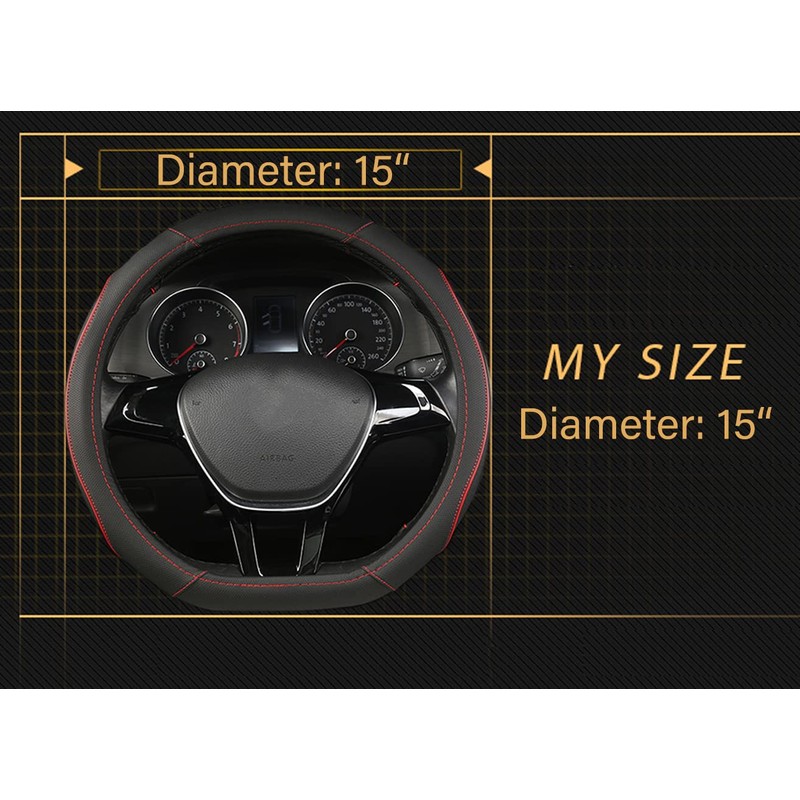 • product design:suitable for 15 inch D-shaped flat bottom steering wheel。 The steering wheel cover is designed with bumps at 2 o'clock and 10 o'clock, 4 o'clock and 8 o'clock, which can better fit the steering wheel and grip, and have a super-class driving experience.