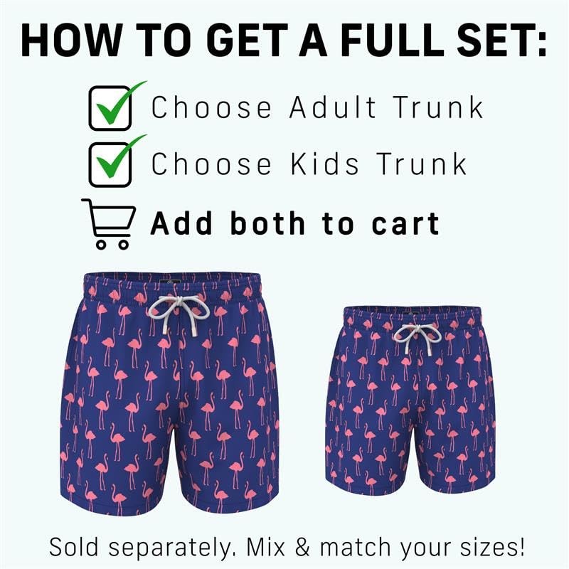 - ✅ NOTICE: BEACH TRUNKS ARE SOLD SEPARATELY. You must add at least two size(Child size and adult size) to shopping cart in order to receive the matching beach shorts together.