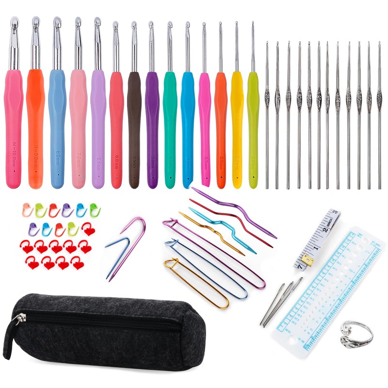 • [Versatile Crochet Hook Set] Our crochet hooks includes 12 Lace Iron , 14 Colorful Rubber Handle Crochet Hooks, to meet all your crochet needs. You will also get 20 colorful crochet markers (random colors), 3 darning needles, 1 small scissors, 1 tape measure ,12 row counter, 1 tape measure,1 finger ring, 3 anti-disassembly pins ,3 twisted pins ,2 U-shaped pins and 1 cloth bag. Crochet hooks for beginners and experienced crocheters!