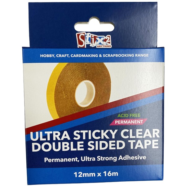 - Stix2 Double Sided Polyester Ultra Adhesive Transparent Tape, 12mm x 16m