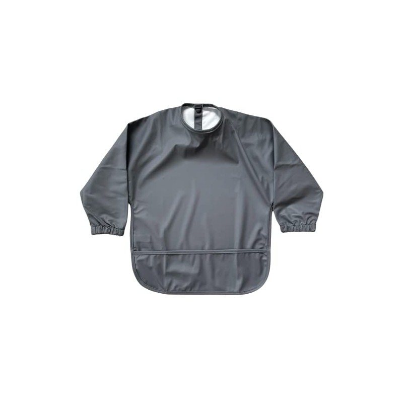 STL Products Long Sleeve Waterproof Coverall Baby Weaning Feeding Bib With Catch All Pocket For Ages 6 To 36 Months (Grey)