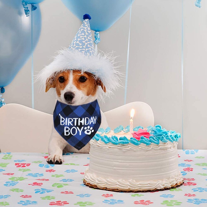 - UNIQUE STYLE: The bandana is designed with a blue plaid triangle scarf and is printed with obvious BIRTHDAY BOY, unique and fashionable. Make your dog the center of attention in birthday parties.