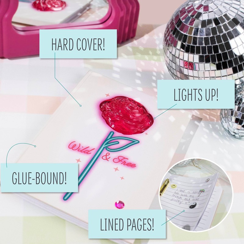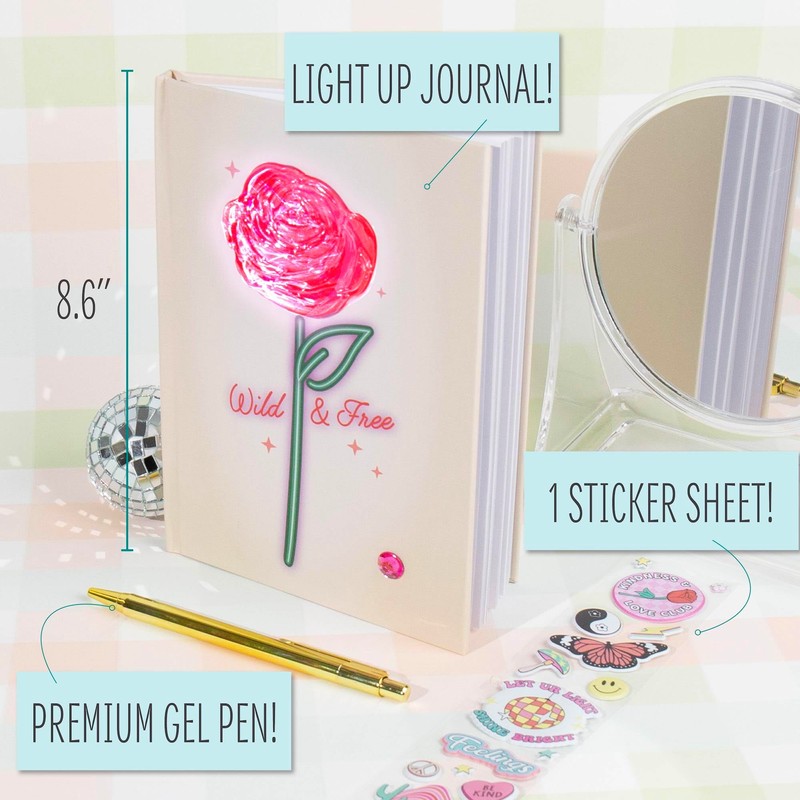 - SET INCLUDES: 1 Gold Pen with Clip, 1 Light-Up Journal (40 Sheets, 5.82 in. x 8.26 in.), 1 Sticker Sheet, Inspiration Guide