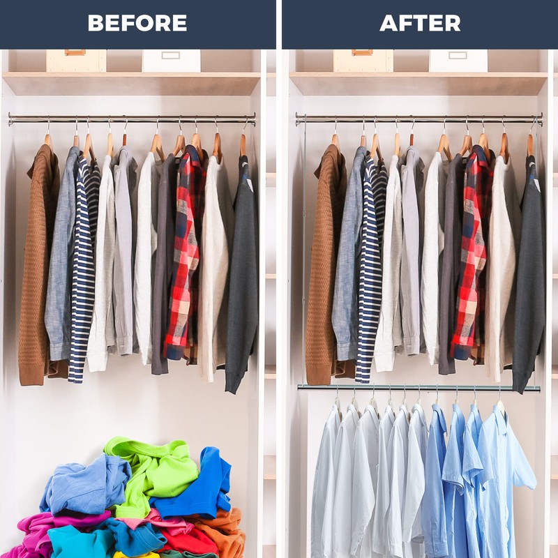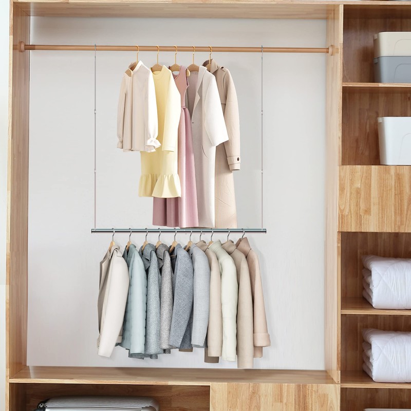- SPACE SAVER: Hangs in the wardrobe and adjusts the height of closet rod according to the upper layer of clothes. The lower layer can also be hung with another layer of clothes, which makes efficient use of space