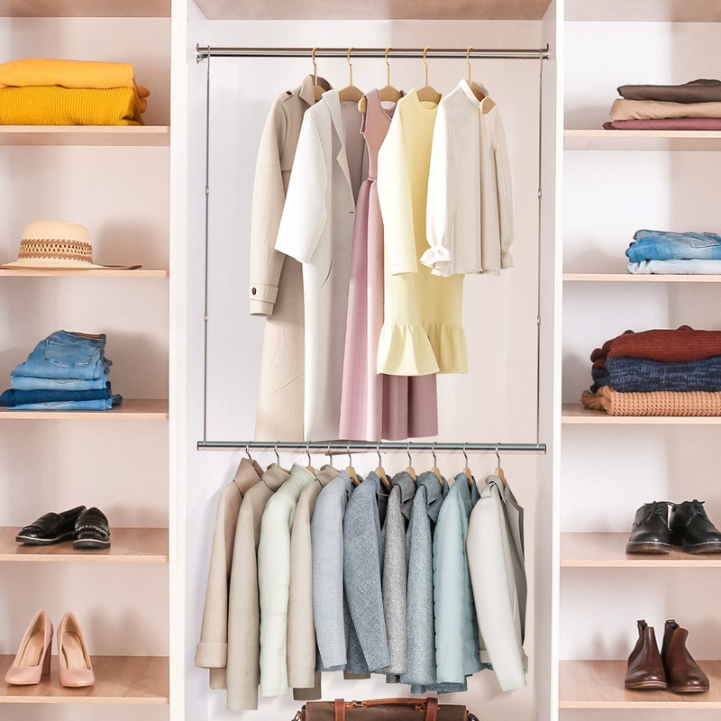 - MULTIPLE USE: This closet rod extender is suitable for hanging all kinds of clothes, includes pants, skirts, shorts, suits, sleepwear and so on. Also be used in balcony to hang drying clothes or bathroom to hang towels