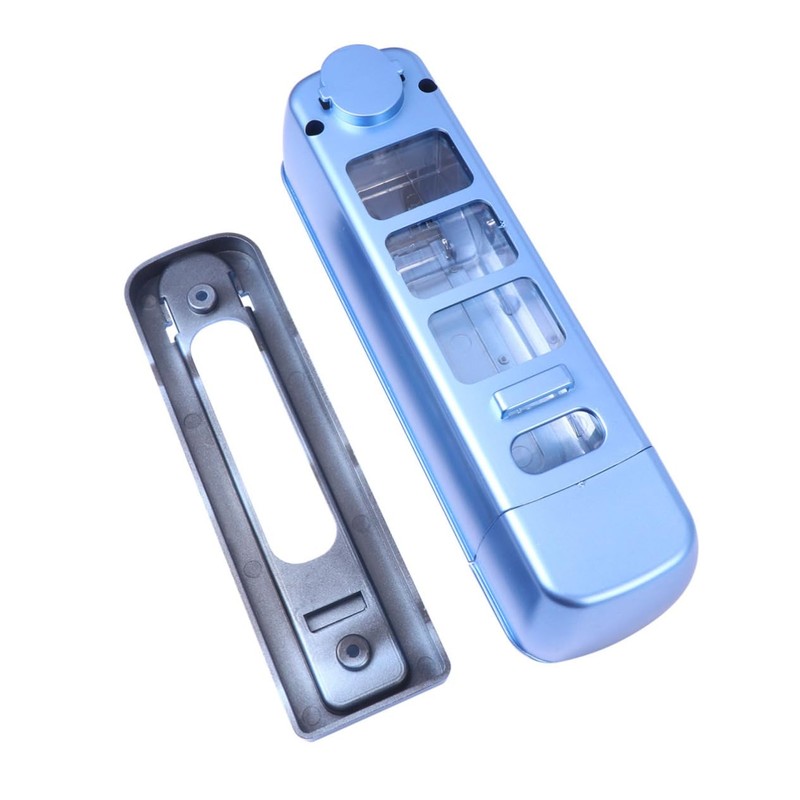 - Color: Blue liquid hand soap dispenser.