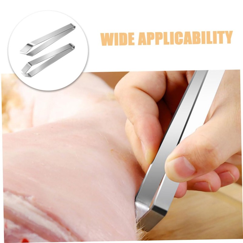 STOBAZA 2pcs Kitchen Tweezers Set Deboning Tweezers Poultry Hair Remover Kitchen Bone Removal Tool Flat and Slanted Tweezers Fish Deboning Tools Fish Bone Pliers Silver Stainless Steel